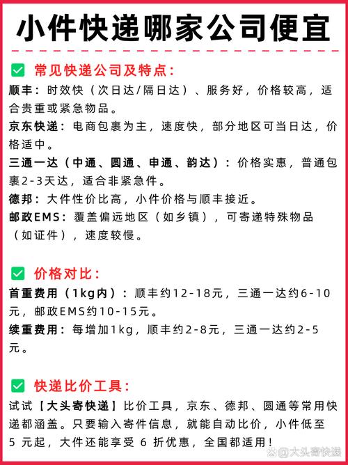- 提前询价,货比三家: 无论选择哪家快递,都建议先通过官方渠道或电话询价,尤其是大件或特殊物品。