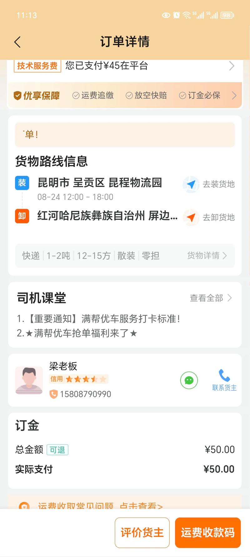 - 注意:建议提前在App上预估运费,做到心中有数,避免支付时产生误会。