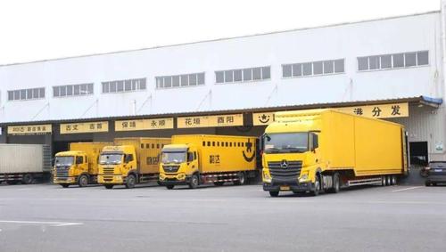 - 从全国其他韵达转运中心发来的快递货车抵达中心。