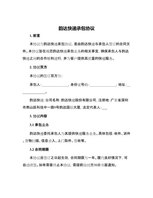 (图片来源网络,侵删)- 模式:您承包平遥县内某个特定区域(如某个街道、乡镇、大学城、大型社区等)的快递派送业务,通常是派送端,您可能需要向上一级网点(可能是韵达的官方直营网点,也可能是已经承包出去的二级网点)缴纳一定的“承包费”或“保证金”。