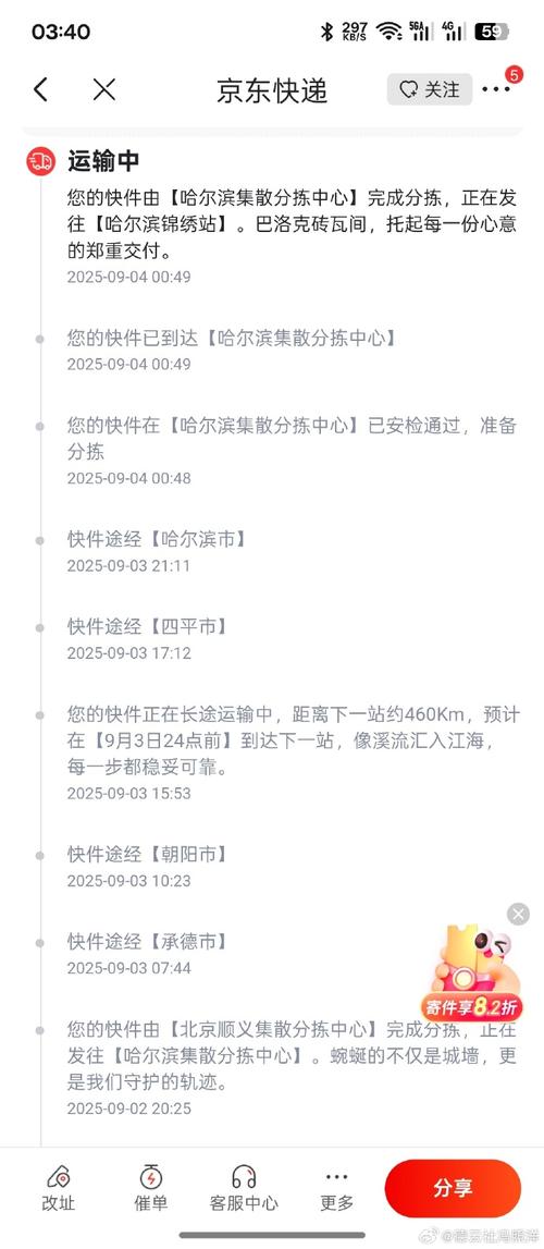 - 寄件端: 如果您在哈尔滨的区县(如双城、阿城、五常等),快递需要先从网点集中到哈尔滨市区,这个过程会增加1天左右的时间。