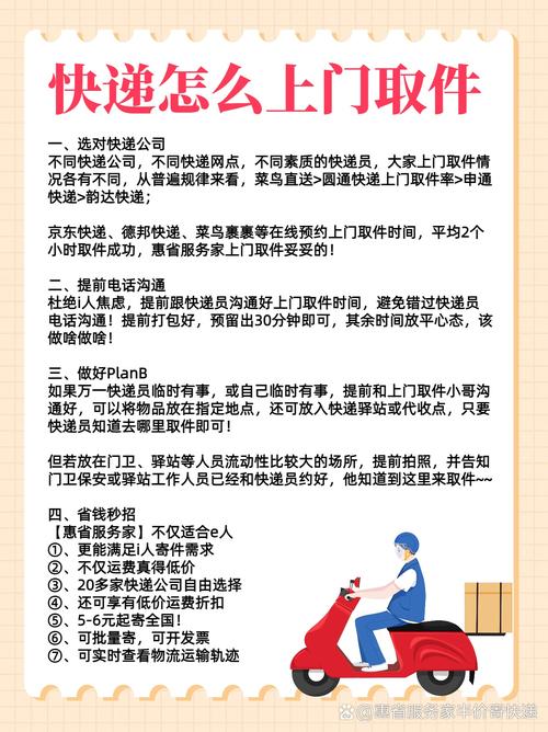 - 协商取件:对于大客户,网点可能会安排固定的快递员每天定时上门取件,或者约定一个时间上门。